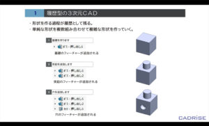 - 手順に沿って進めることで3次元モデルが自然と描けます。