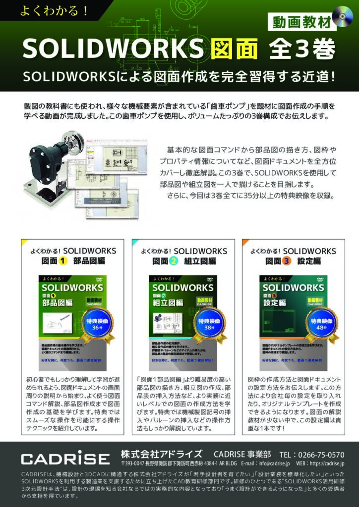 SOLIDWORKSの図面作成に特化して解説したDVD