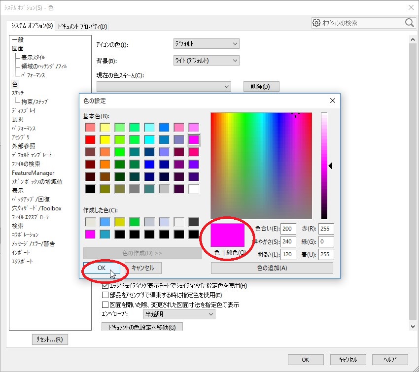 色の設定ウインドウでグレーと区別しやすい色を選択し、