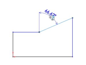 選択した矢印を仮想の線として認識し、角度寸法が現れます。