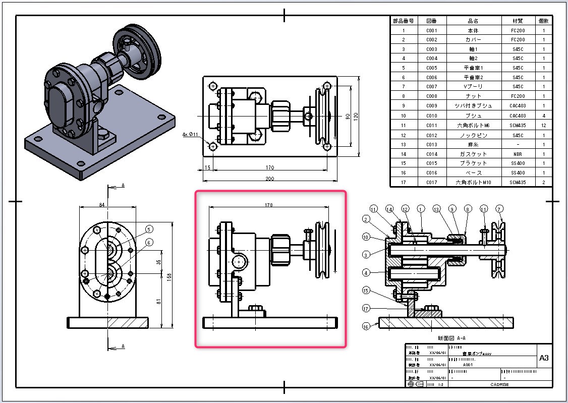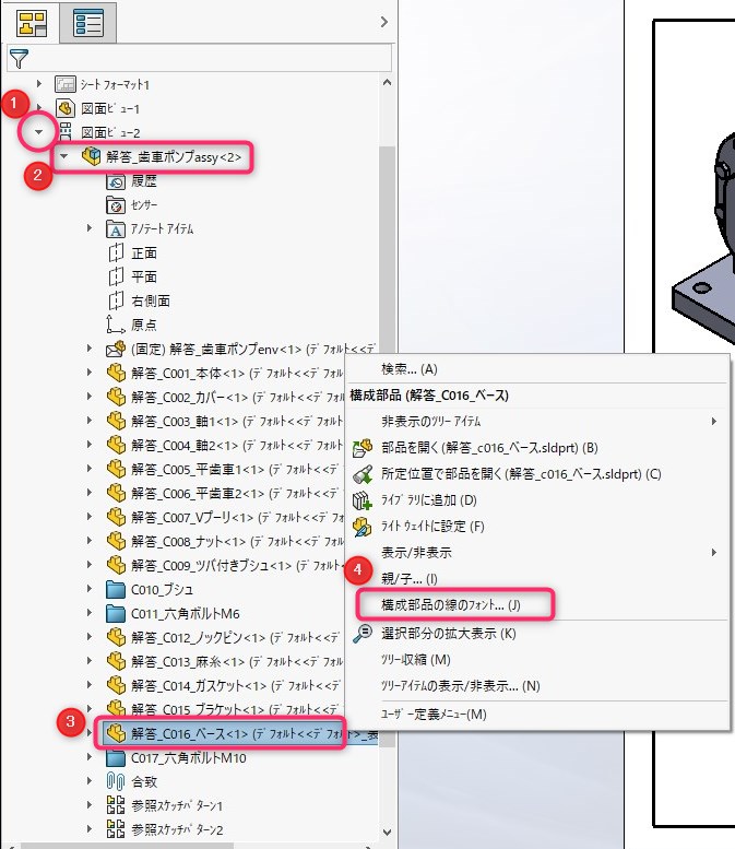 ②アセンブリドキュメント「解答_⻭⾞ポンプassy」を展開します。