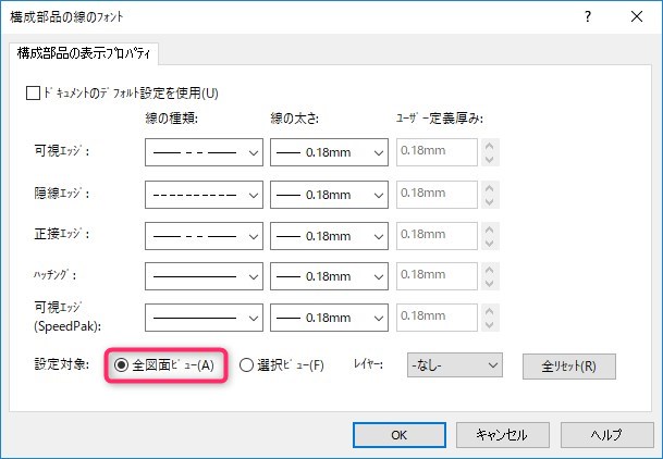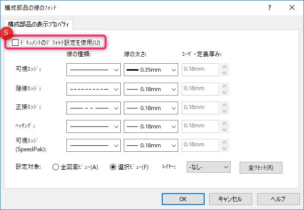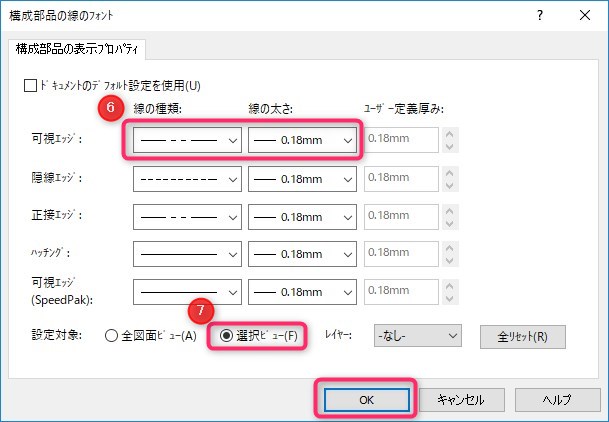 「構成部品の線のフォント」のダイアログボックスが現れます。