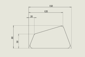 2D図面作図の際、「丸みのあるコーナー」に寸法を入れるには、