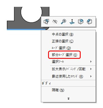 「部分ループ選択」とは、指定エッジから指定エッジまでの連続したエッジを