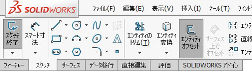 フューチャータブから「エンティティオフセット」コマンドをクリック。