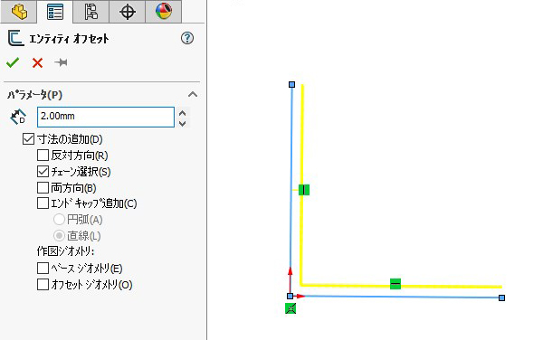 「エンティティオフセット」コマンドの「エンドキャップの追加」は SOLIDWORKS2016 からの機能となります。