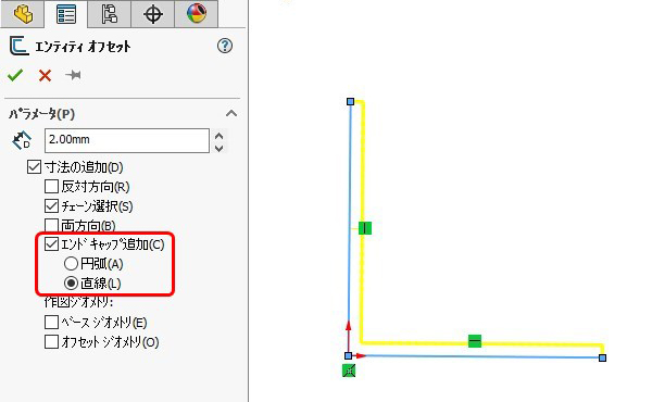 「エンティティオフセット – エンドキャップ追加 – 」