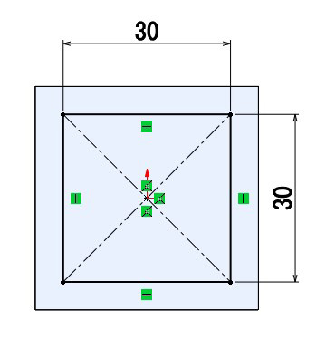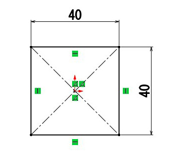 (3) 基本3面の「平面」に図のようなスケッチを描きます。
