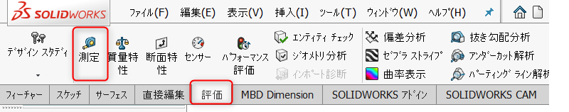 CommandManagerの「評価」タブ → 「測定」コマンドをクリックします。