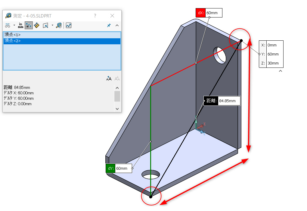 → 円筒の中心から点までのそれぞれの方向の距離を計測できます。