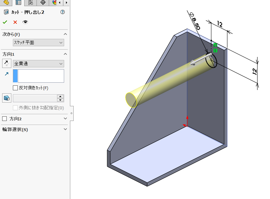 例えば、下図の穴のフィーチャーにフィーチャー編集に入っている場合でも、