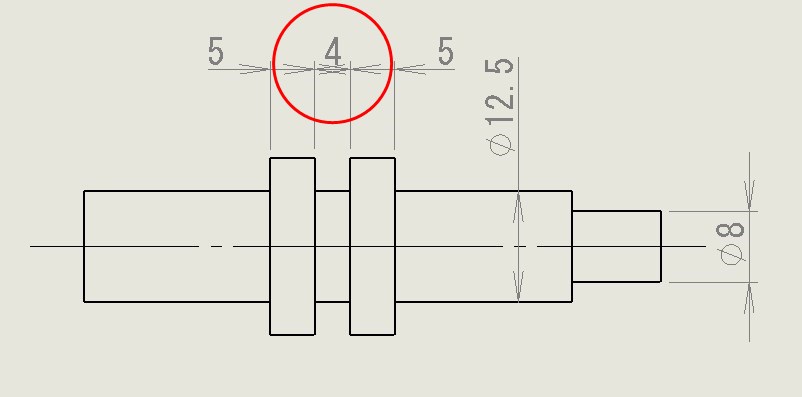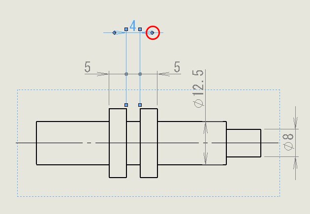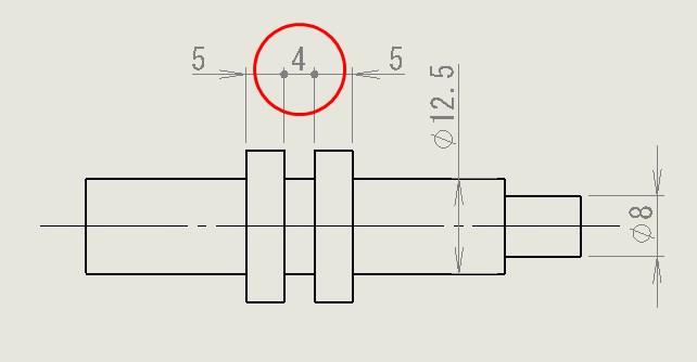 また、この場合の寸法数値4の寸補助線は矢印をつけないルールです。