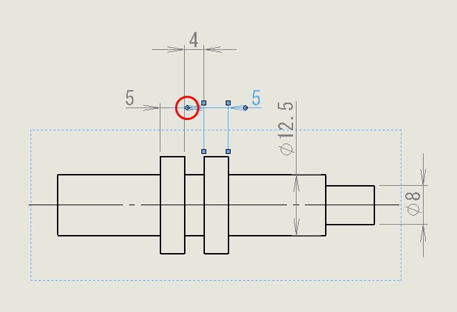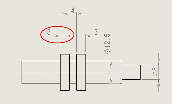 寸法数値5を選択状態にして矢印の丸印を右クリック。