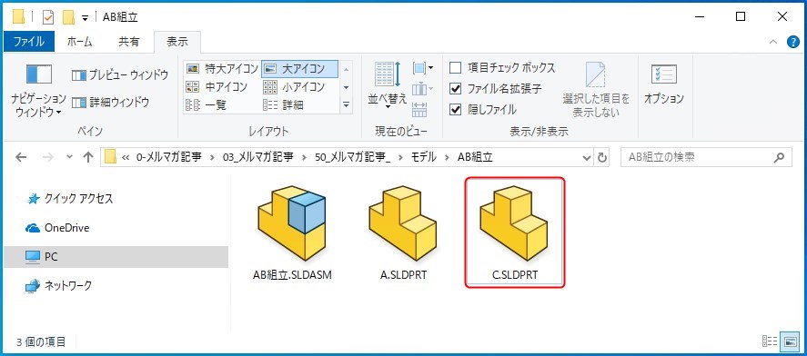 では実際に Windows Explorer から「B」部品の名前を「C」に変更してみましょう。