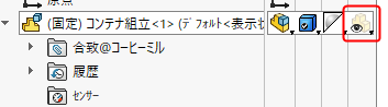 現在、サブアセンブリ「コンテナ組立」は透明化をしています。