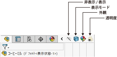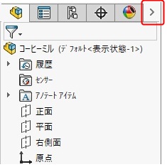 FeatureManager デザインツリー上部のタブの右側にある  をクリック。