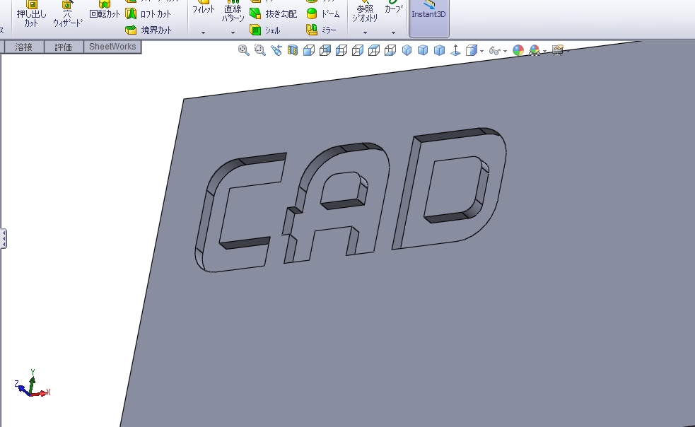 以前の「テキスト その1」 「テキスト その2」では文字を部品の面にスケッチしましたが、