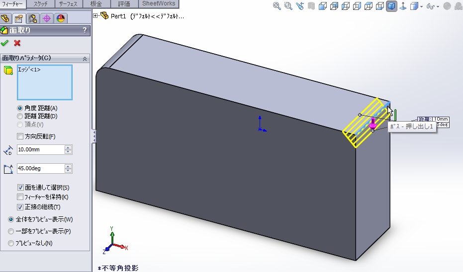 面取り・フィレットは即座に適用されます。