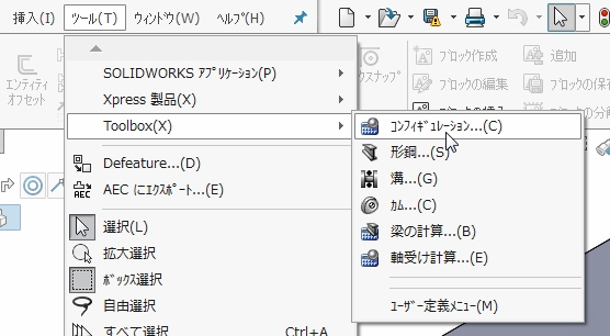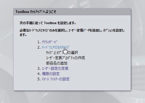 (3)システムオプションに穴ウイザード/toolboxがありますが、