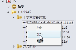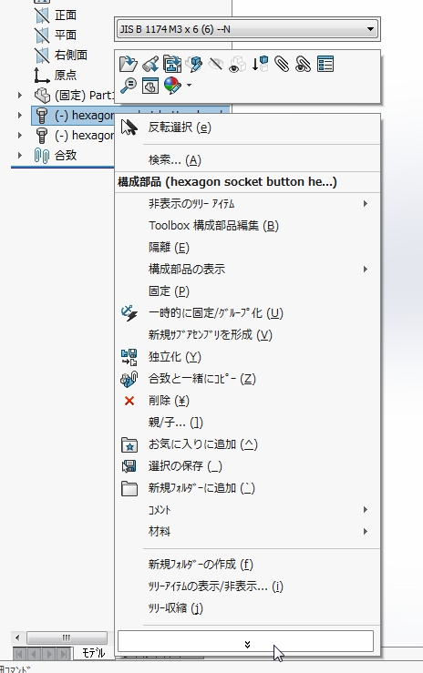 または、ツリーで部品を右クリックし、出てきたメニューから