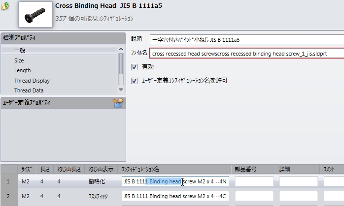 「ユーザー定義コンフィギュレーション名を許可」では画像下のコンフィギュレーション名を変更できます。