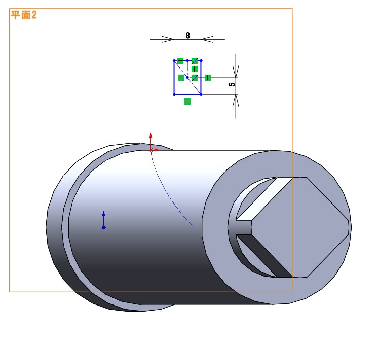 こうして新しく作成した平面2に溝を掘るためのスケッチを描いていきましょう。