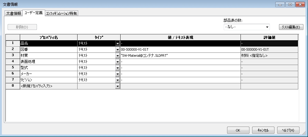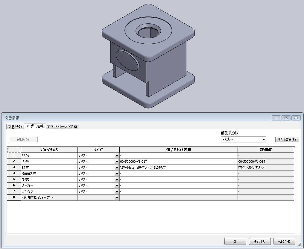 すると、下図のように部品ファイルのプロパティが確認できます。