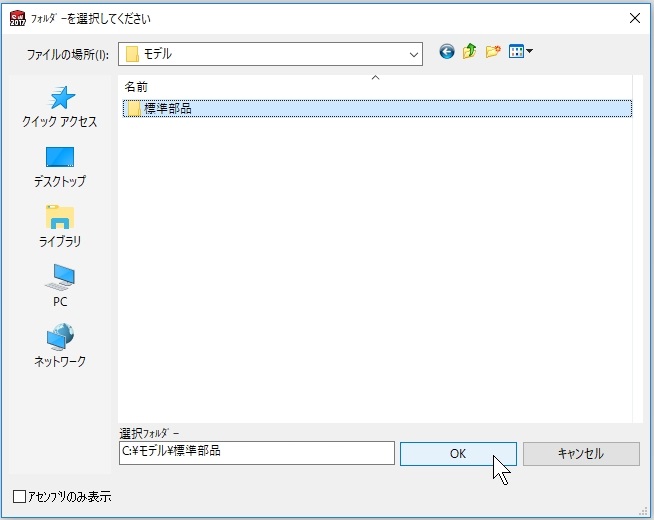 (「標準部品」という先ほど指定したフォルダが加わっていますね)