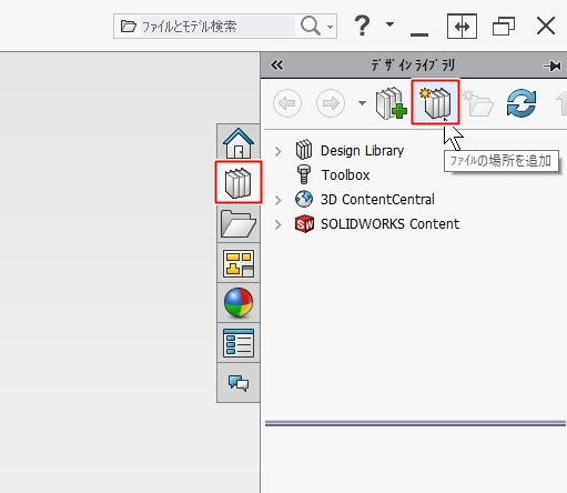 「ファイルの場所を追加」をクリックし部品の保存先フォルダを指定します。