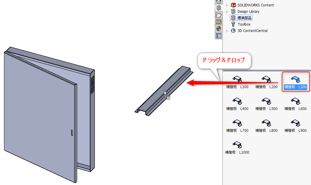 よく使う購入部品や標準部品をアセンブリドキュメント内に配置する際、