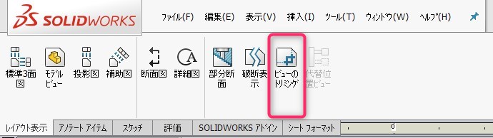 <レイアウト表示タブ>から「ビューのトリミング」をクリックします。