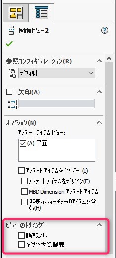 3. 図面ビューのトリミングが行われ、選択した領域のみ表示できます。