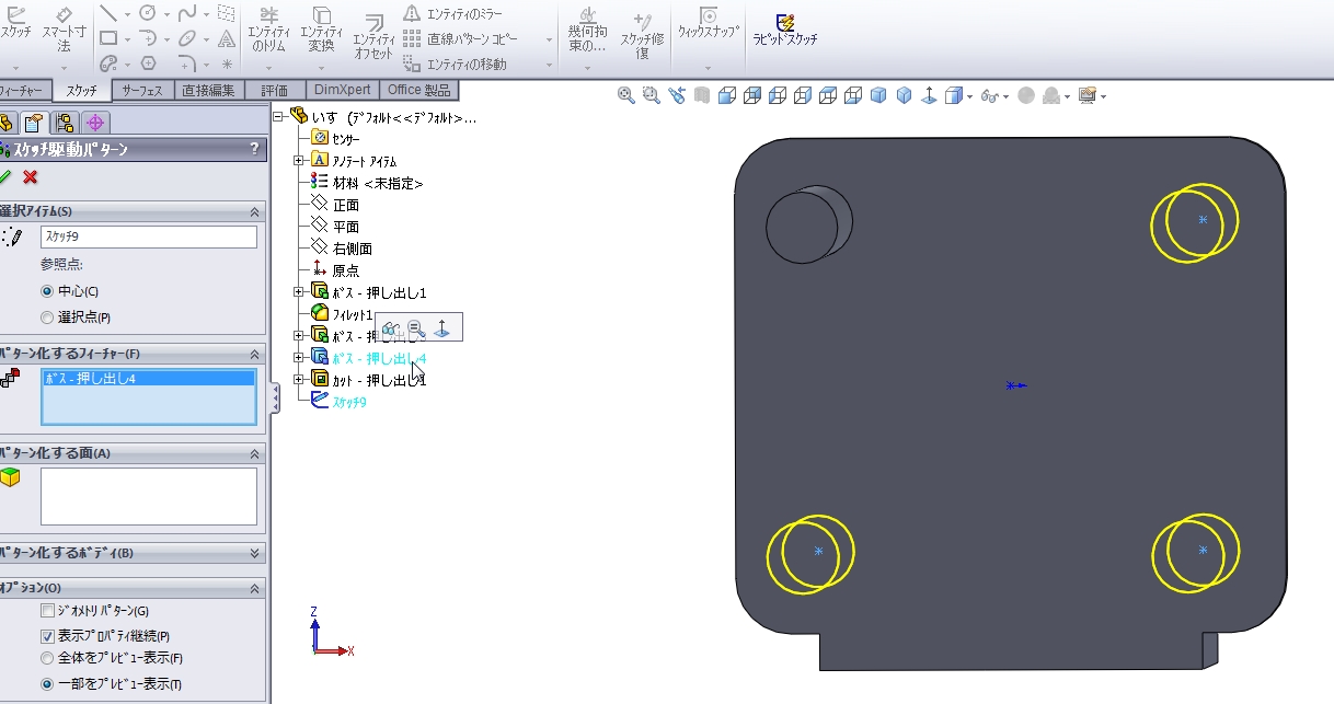 今回は【スケッチ駆動パターン】についてご説明します。 【スケッチ駆動パターン】とはスケッチ内のスケッチ点を使用して、 フィーチャーパターンを作成する機能です。 注意点として […]