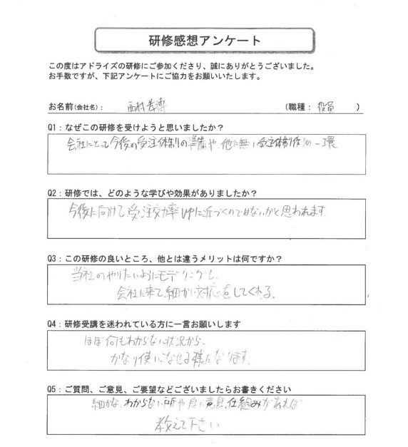 Q4:研修受講を迷われている方に一言お願いします