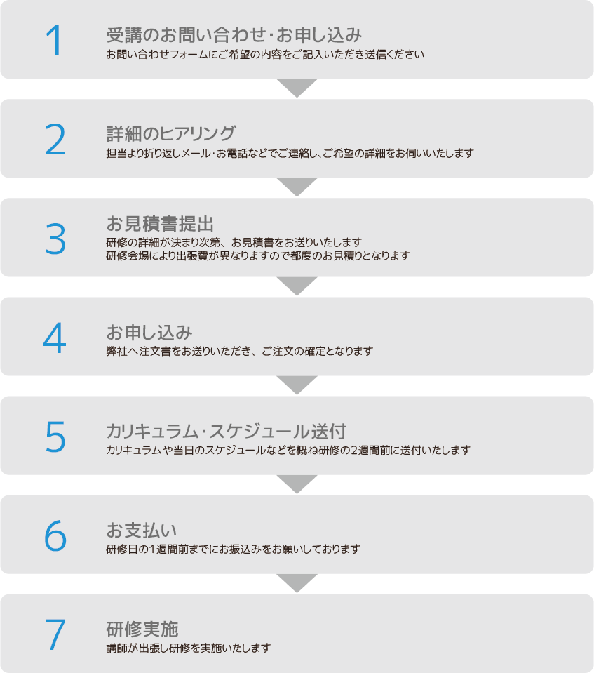 - カリキュラムなど必要情報を事前に提出いたします。お気軽にお問い合わせください