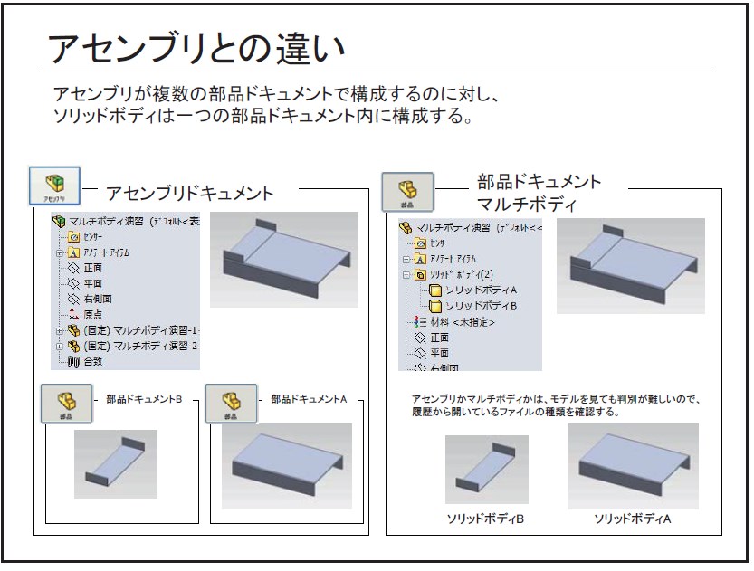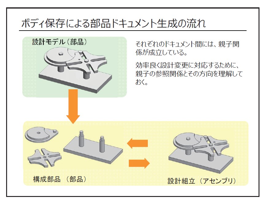 「マルチボディ」(1つの部品ドキュメント内に複数の部品を存在させる機能)についての概念と、それを用いたトップダウン設計手法をご案内します。