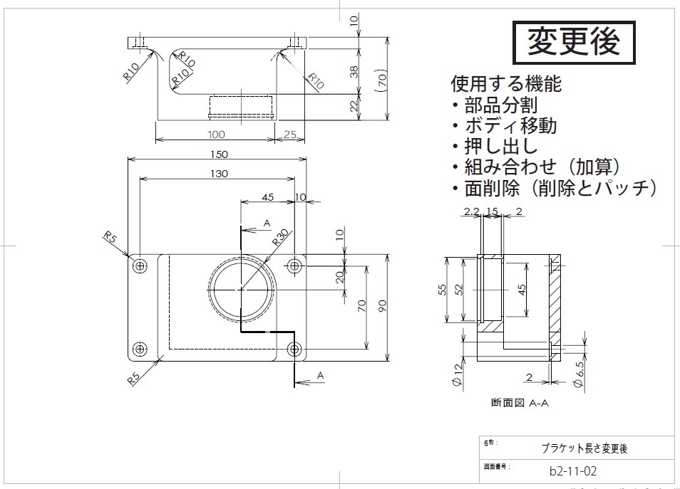 これができると1部だけに穴を開けたり、フィレットを付ける、シェル化するなどさらに融通を効かせた形状ができます。しかし、アセンブリの考え方に慣れている方にとって「マルチボディ」の構成は最初わかりにくい場合もあります。3日間でしっかり理解して、ワンステップ上の機構設計をマスターしましょう。